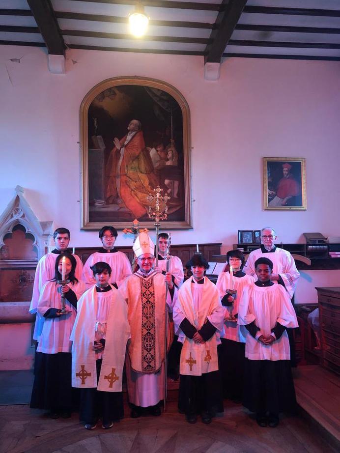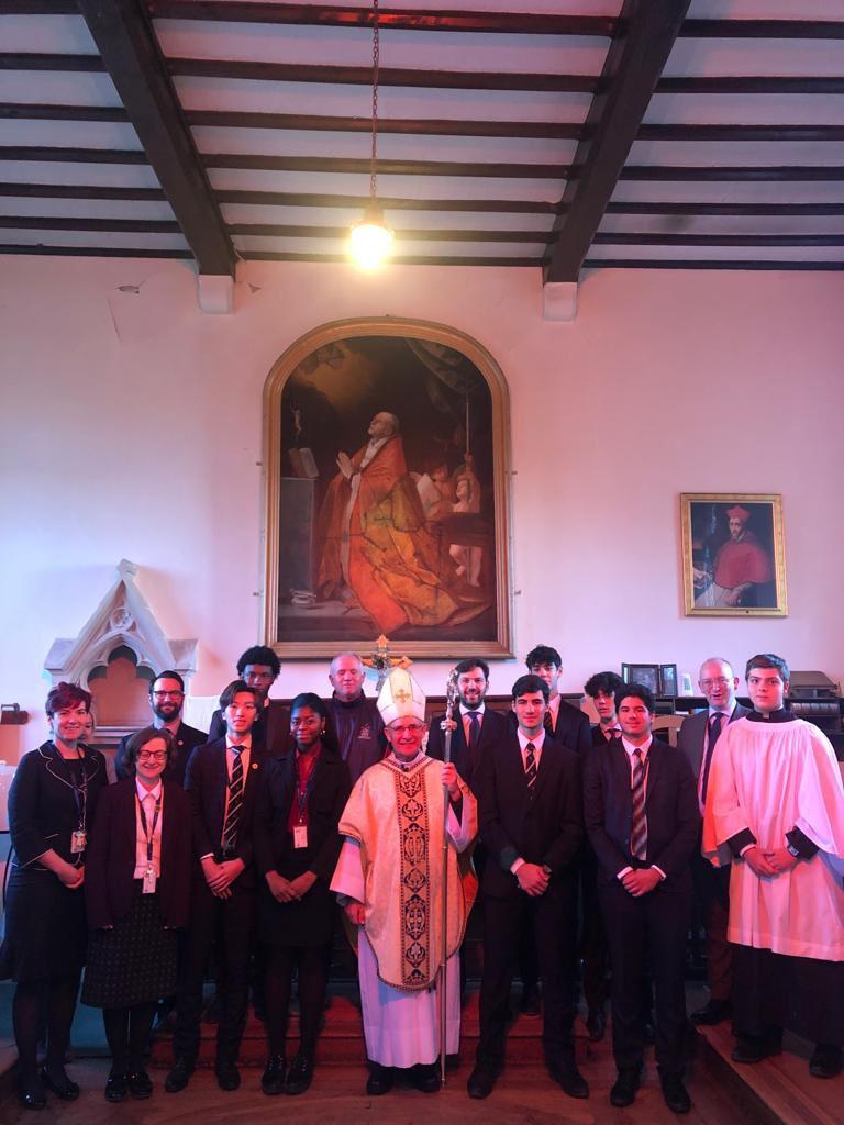 On the Feast of St Edmund, we welcomed Canon Alexander Sherbrooke as our celebrant and preacher. His sermon was very thought-provoking and there was something in it for students of all ages. The choir were in great voice and sang a Mass setting written by Mr Woodhall especially for the College At the end of the Mass the relic of St Edmund was taken around the Chapel and the students were blessed Canon Sherbrooke also brought his dog with him which caused great interest The dog spent Mass in the Boarding office enjoying lots of fuss