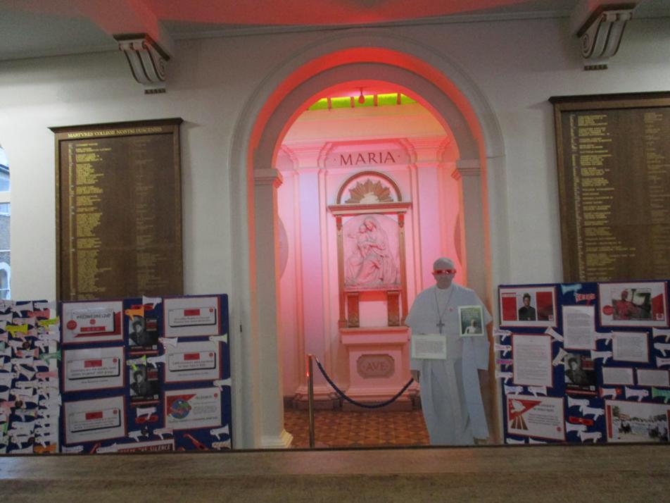 23rd November was Red Wednesday, an opportunity to come together with Christians Christian Persecution and commit to fighting against it. The caption this year was “Brea PowerPoint about Christian persecution and then a film made by Ellis which included in topic Students then completed a megaphone writing a message and committing to speak up against persecution, On Friday 25th there was a voluntary Mass for students wishing to go to Mass on behalf of someone who couldn’t because of persecution