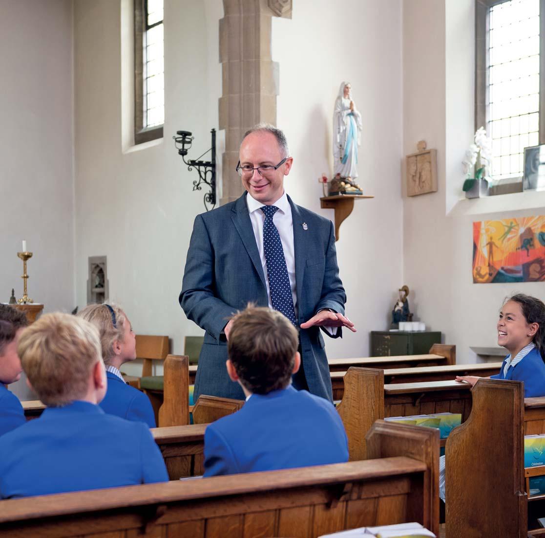 Mass is held weekly in our own St Hugh’s Chapel as year groups, with Holy days of obligation and Feast Days being celebrated by the whole school.