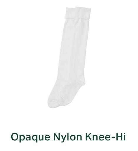 Crew socks, knee highs, or tights are to be solid white or solid black