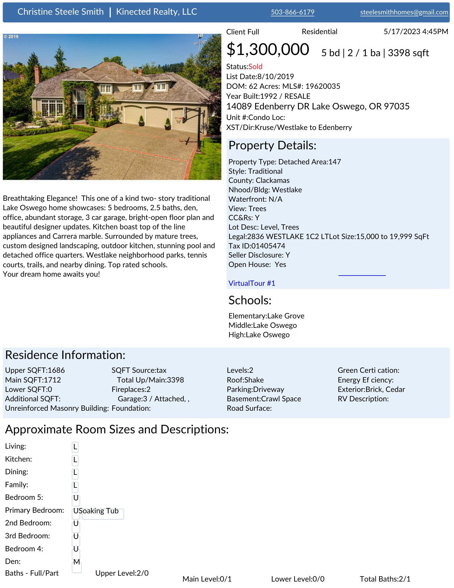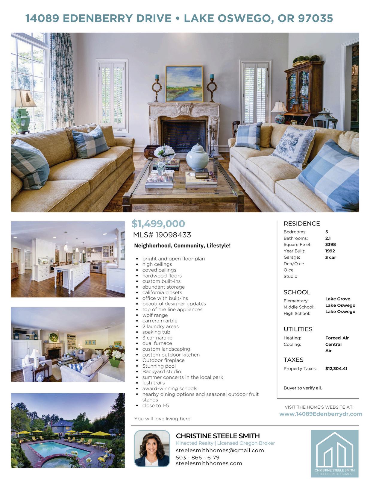 Christine delivered on everything she covered in the orientation to selling our home in Lake Oswego Since we had not been in the house selling market for 33 years, she "held our hands" all the way through the process. Our home sold in 7 days! We found Christine to be very compassionate about her profession and highly personal