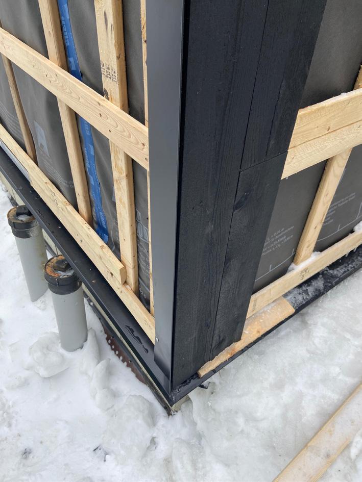 137.COLONNE (2) 2x6 RECOUVERTE DE CONTREPLAQUÉ 3/4" D'ÉP. ET D'UN PLIAGE D'ALUMINUM DE MÊME COULEUR ET FINI QUE LES CADRES DE FENÊTRE (VOIR DÉTAIL)