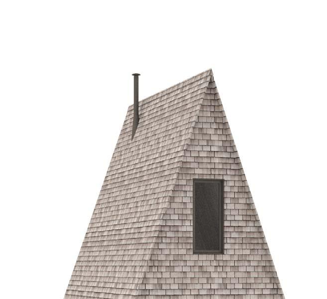 Sober and minimalist, the building’s architecture draws inspiration from local vernacular with its cedar shingle cladding, which wraps around a simple form. Exposed to winds and salt air, the wood will quickly take on the weathered gray tone of the old houses in La Grave.
