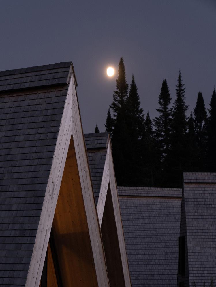 The lounge is a cozy and beautifully lit space where guests can admire unique views of Mont-Tremblant and sunsets behind the Laurentian mountaintops.