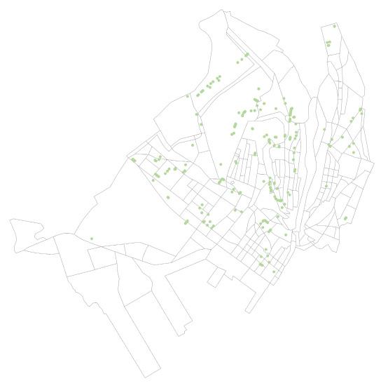 Images: spatial distribution of the demographical segments in the neighborhood of the city of Cagliari, based on their density, and incidence at the local (neighborhood) and at the city level.