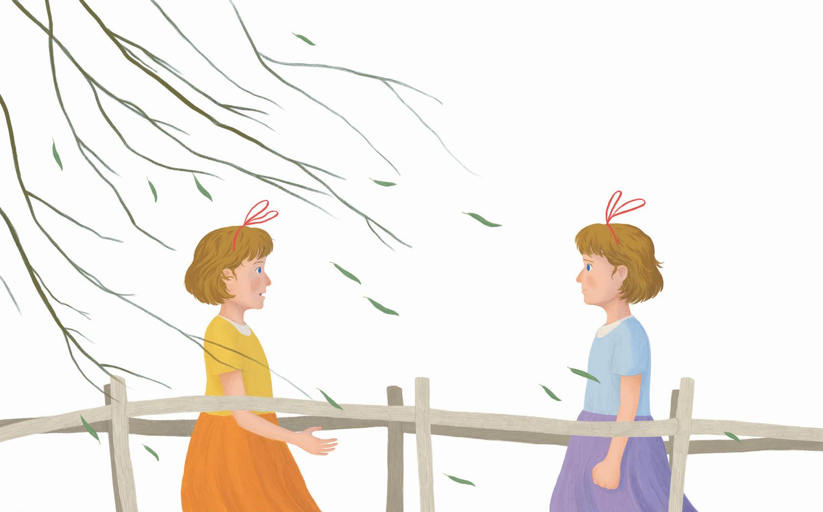Ci siamo messe sul ponte che porta sull’altra riva ad ascoltare i fiori cantare e gli alberi suonare e il ruscelletto mormorare la sua melodia. Allora Lilla-li mi ha preso forte il braccio e ha detto: «Sorella Mia Adorata, c'è una cosa che devi sapere!»