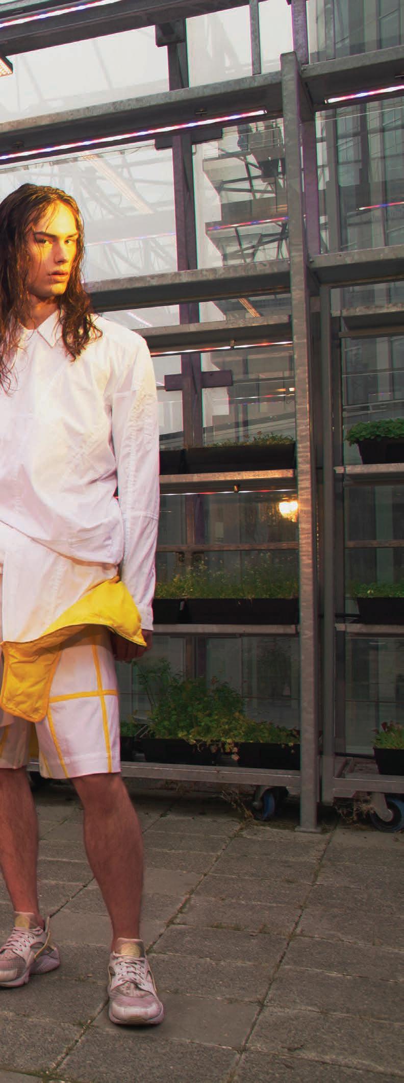 “Greenhouse” is a collection made of 2 garments : a shirt and a pair of trousers that each can be worn in 3 different ways. The garments are made from patchwork fabric from deadstock provided by C&A and developed using 3D prototyping software.