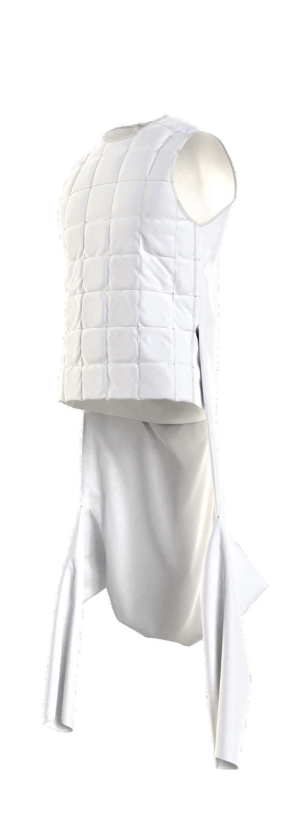 This resulted in a collection of non binary garments, with no gender, no size and no single use. The collection was developed using 3D virtual protoyping.