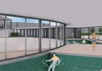 La cubierta verde de la piscina, vestuarios públicos y cafetería permite un aislamiento adicional.