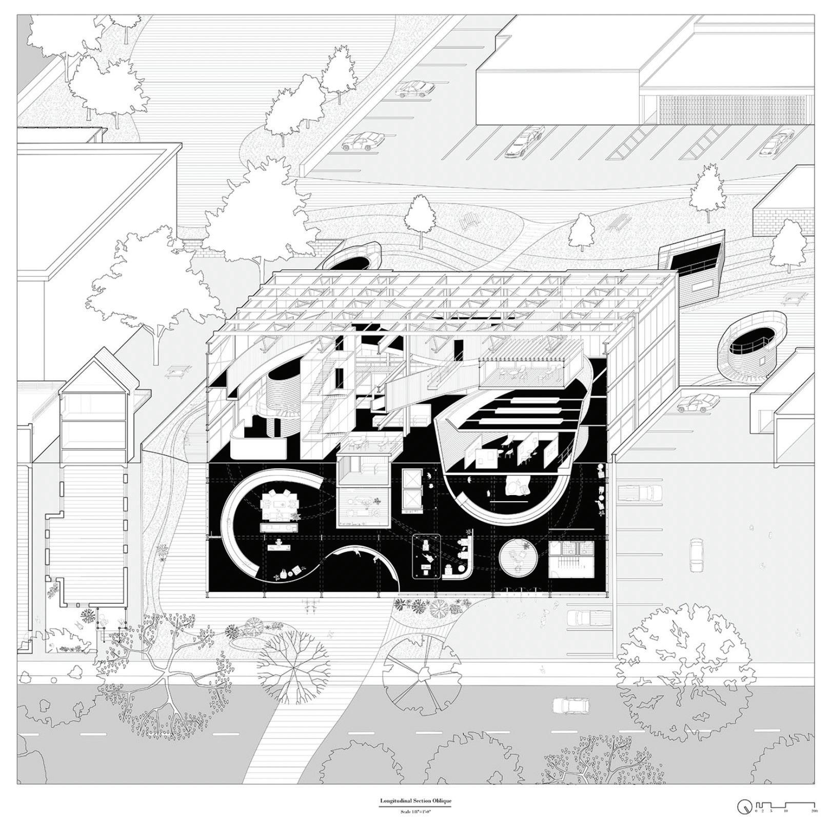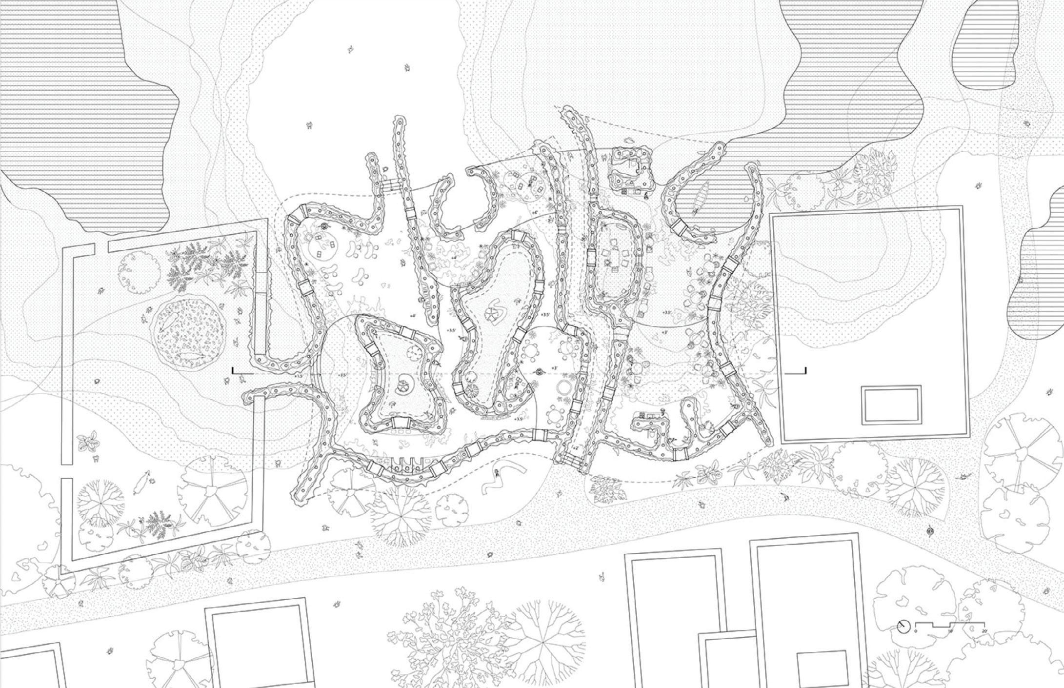 Watery Mud was developed out of a series of design charrettes that examined at how lines, patterns, and figures in a picture could be used to make designs. The programme was a 10,000 square foot childcare facility for women and children, opted to locate in Dhaka, Bangladesh—a city that is increasingly hosting climate refugees.