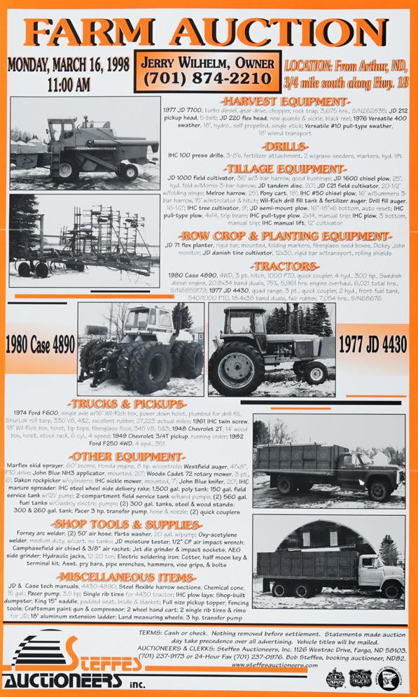 It’s the result of changes which everyone in the farm and construction business can relate to as you navigate your world. For us, we are no longer printing the “sale bills” that have been the staple of auction advertising going back generations or as long as the printing press has been around. You could say the sale bill was their internet. After all, auction flyers posted at the local café or the parts store were huge when they went up in the community. It was news and something for all the neighbors to talk about! Now we get pretty much whatever we want at the touch of our