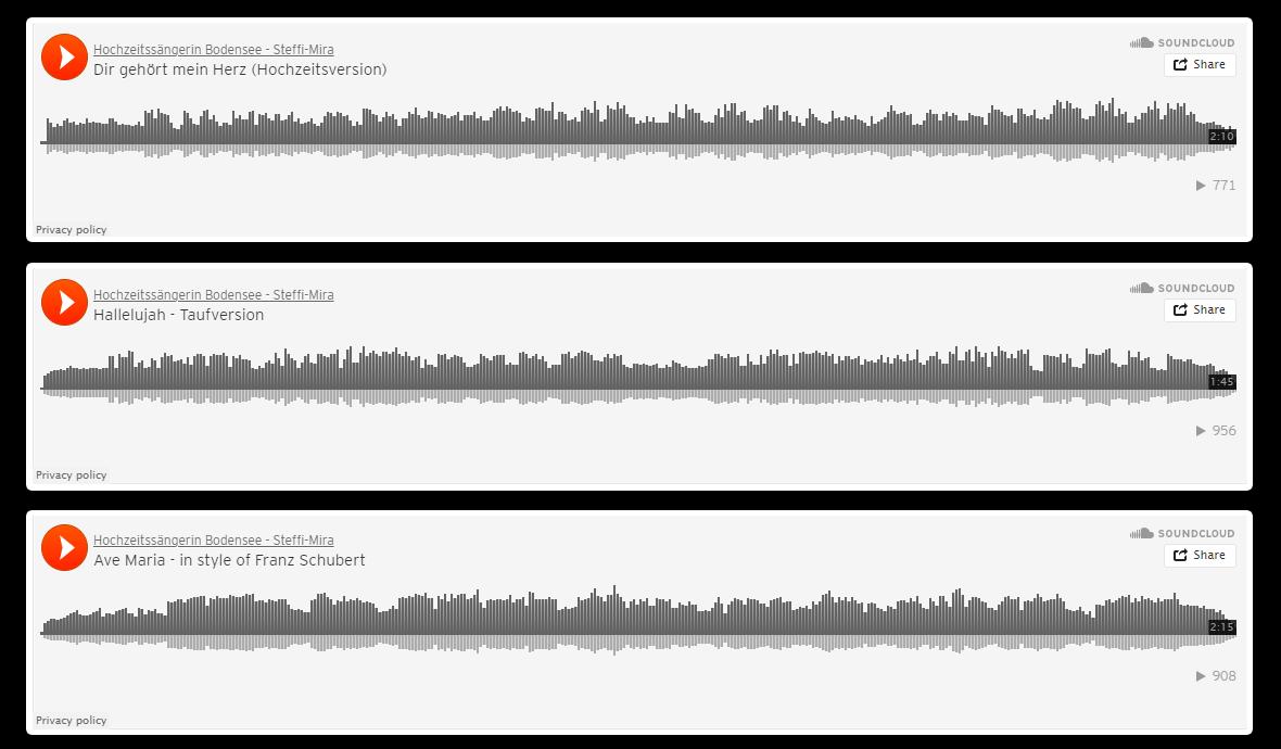 Ich bin Steffi Mira – Ihre Hochzeitssängerin vom Bodensee und Sängerin für Ihr Event. Mein Einzugsgebiet: Ravensburg, der Bodensee, BadenWürttemberg, Bayern, das Allgäu, Deutschland, Österreich und die Schweiz.