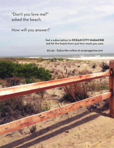 “Don’t you love me?” asked the beach. How will you answer? Get a subscription to OCEAN CITY MAGAZINE and let the beach know just how much you care. $21.40 - Subscribe online at ocnjmagazine.com