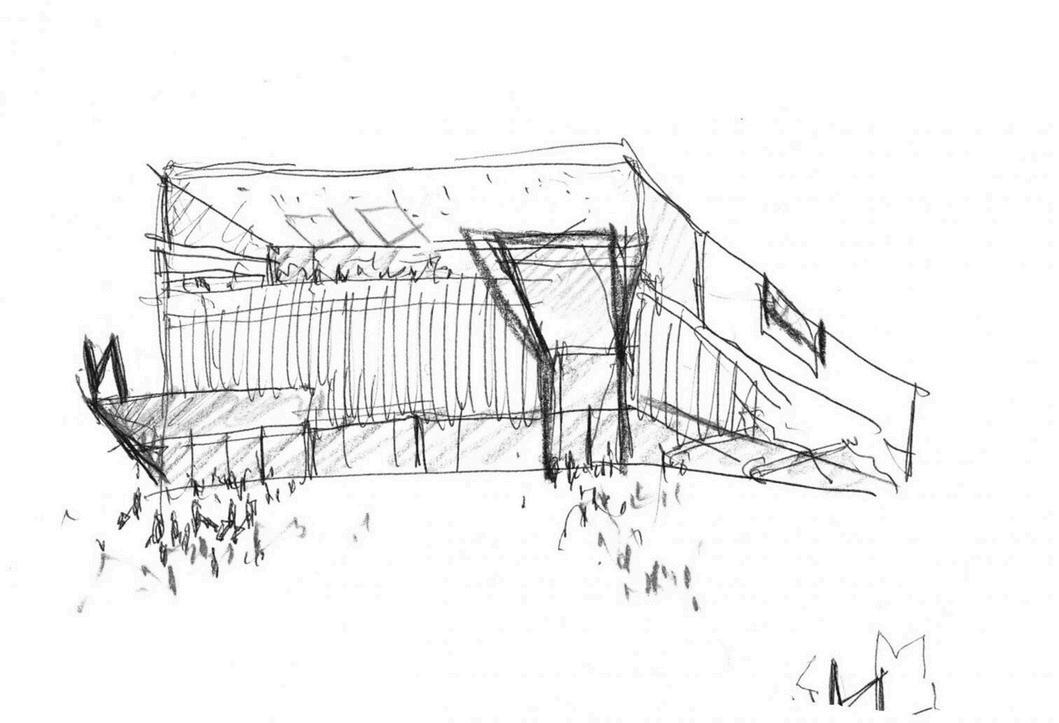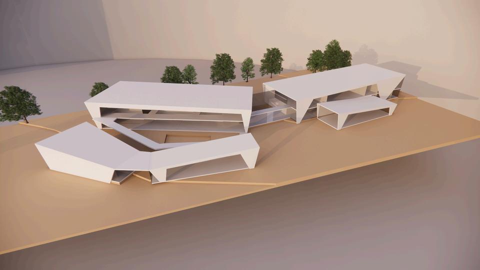 El volumen se ha creado pensándose como un espacio integrado a la naturaleza que busca adaptarse al terreno, configurando la forma para abrirse a un area libre recreativa