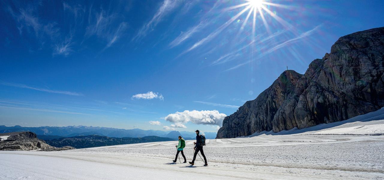 Neun steirische Regionen, 950 Kilometer, 60 Etappen – auf dem Weitwanderweg „Vom Gletscher zum Wein“ können Gäste die verschiedenen Facetten der Steiermark Stück für Stück erwandern. Startpunkt für die Entdeckungsreise ist der Dachstein-Gletscher auf 2.700 Metern. Ist die erste Etappe durch das ewige Eis gemeistert, teilt sich der Weg in die 548 Kilometer lange Nordroute mit 35 Etappen bis Bad Radkersburg im Thermenland und die 376 Kilometer lange Südroute mit 25 Etappen nach Leibnitz in der Südsteiermark. Durch einige Varianten ergibt sich aus beiden Routen die Gesamtlänge von 950 Kilometer. Verschiedene Etappen-Wanderpakete inklusive Gepäcktransport sorgen auf der Nordroute für komfortablen Wandergenuss.