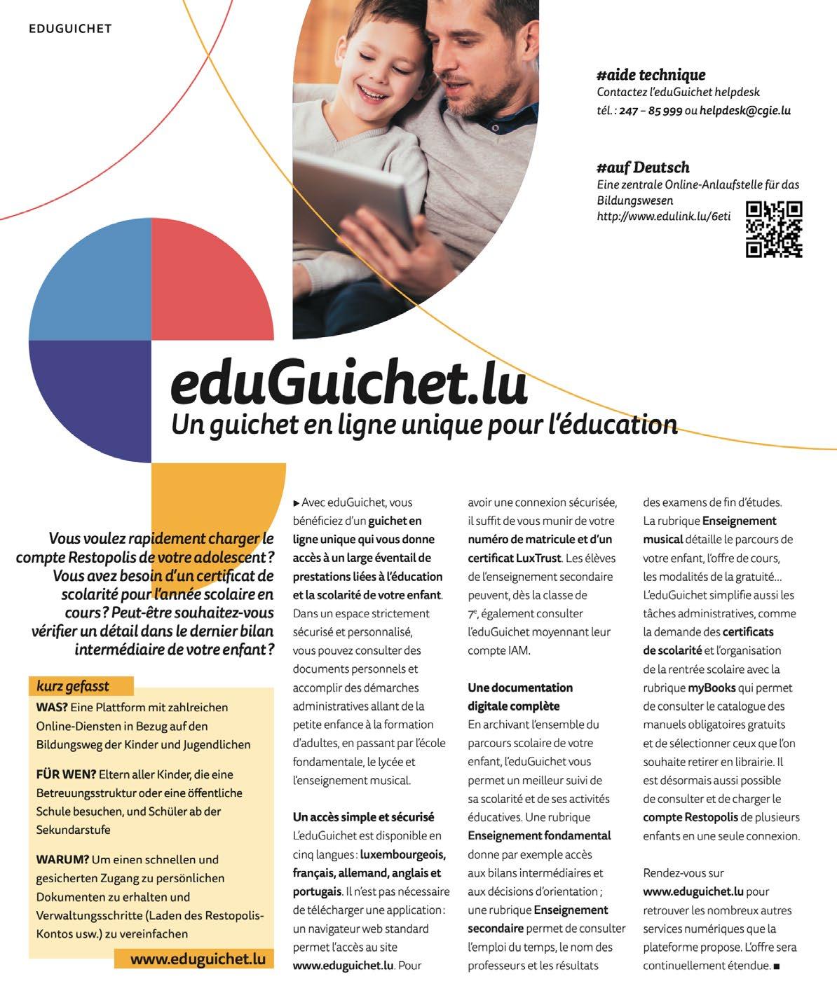 Bienvenue dans l’aventure éducative de cette nouvelle année scolaire! C’est avec un grand plaisir que je vous présente la nouvelle édition de notre brochure « De Schoulbuet », dans laquelle vous trouverez toutes les informations sur la vie scolaire susceptibles de vous intéresser pour accompagner vos enfants tout au long de l’année scolaire 2024-2025. Merci à tous ceux qui ont contribué à cette nouvelle édition du Schoulbuet.