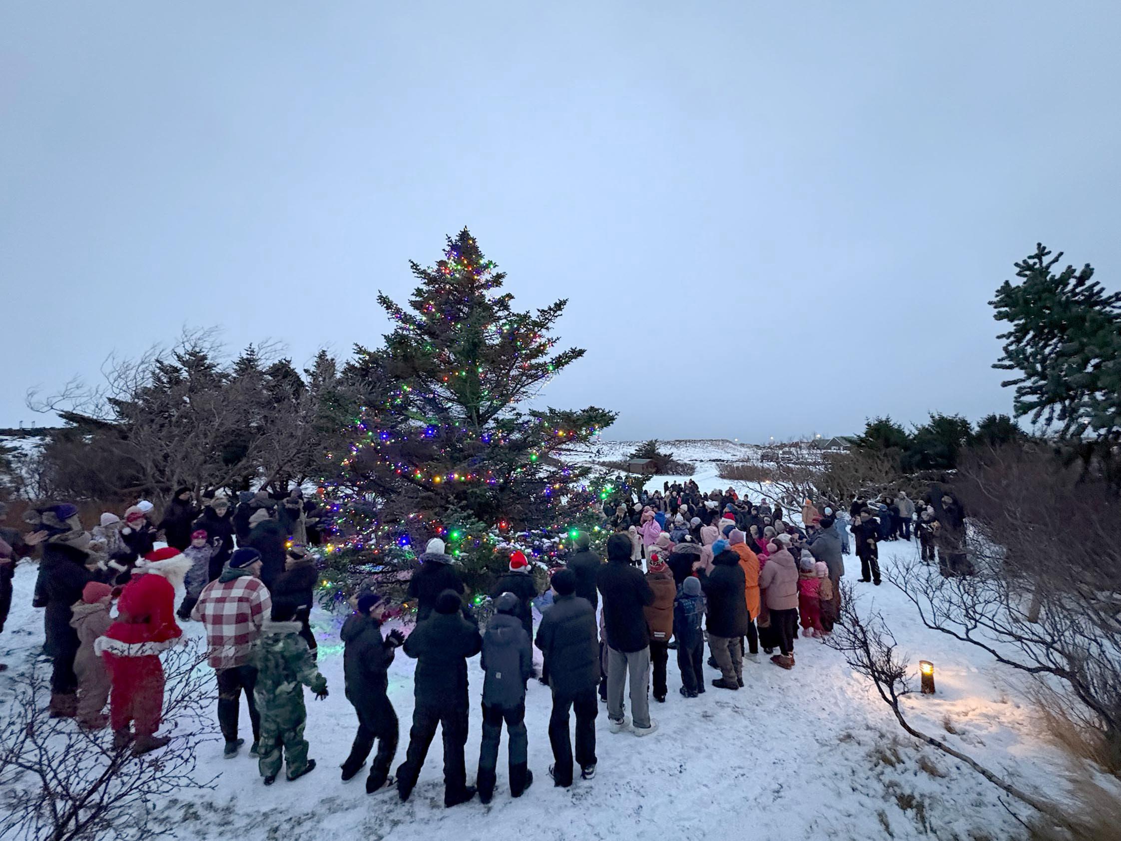 en nú var gleðin færð í Tröðina á Hellissandi. Þó skína ljósin skært á þremur hefðbundnu trjám Snæfellsbæjar, við Höskuldarbraut á Hellissandi, við tjörnina á Rifi og á Sáinu í Ólafsvík.