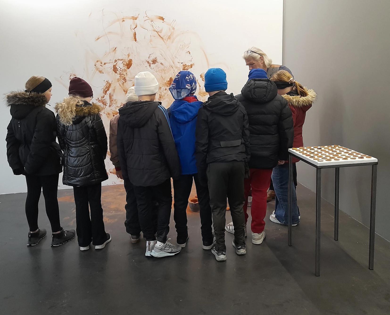 Í lok nóvember fóru nemendur 5. og 9. bekkjar Grunnskóla Snæfellsbæjar í heimsókn í 3 veggi listrými og skoðuðu þsr sýningu listakonunnar Elsu Dórótheu Gísladóttur. Sýningin nefnist Snerting og var unnin úr mánaðardvöl hennar á vinnustofu í Varanasi á Indlandi. Í vinnustofunni kafaði Elsa ofan í notkun litagjafa og litarefni í daglegu lífi í Indlandi, sem er sterkur hluti af menningararfi og sjálfsmynd Indverja. Elsa dvaldi svo í vinnustofu á Hellissandi í sumar þar sem hún vann með gerð litarefnis undir leiðsögn David Kremer frá fyrirtækinu Kremer Pigments. Kremer Pigments er þýskt fyrirtæki sem framleiðir litarefni, meðal annars úr steinefnum frá Snæfellsnesi. Bjarni Sigurbjörnsson, eigandi að 3 veggjum, leiddi 5. bekk í gegnum sýninguna og endaði leiðsögnin svo hjá nýjum skúlptúr Jo Kley við Krossavík, Frelsisleiðinni. 9. bekkur fékk á meðan leiðsögn Ragnheiðar Guðmundsdóttir, eiganda 3 veggja og textílkennara við Grunnkóla Snæfells-