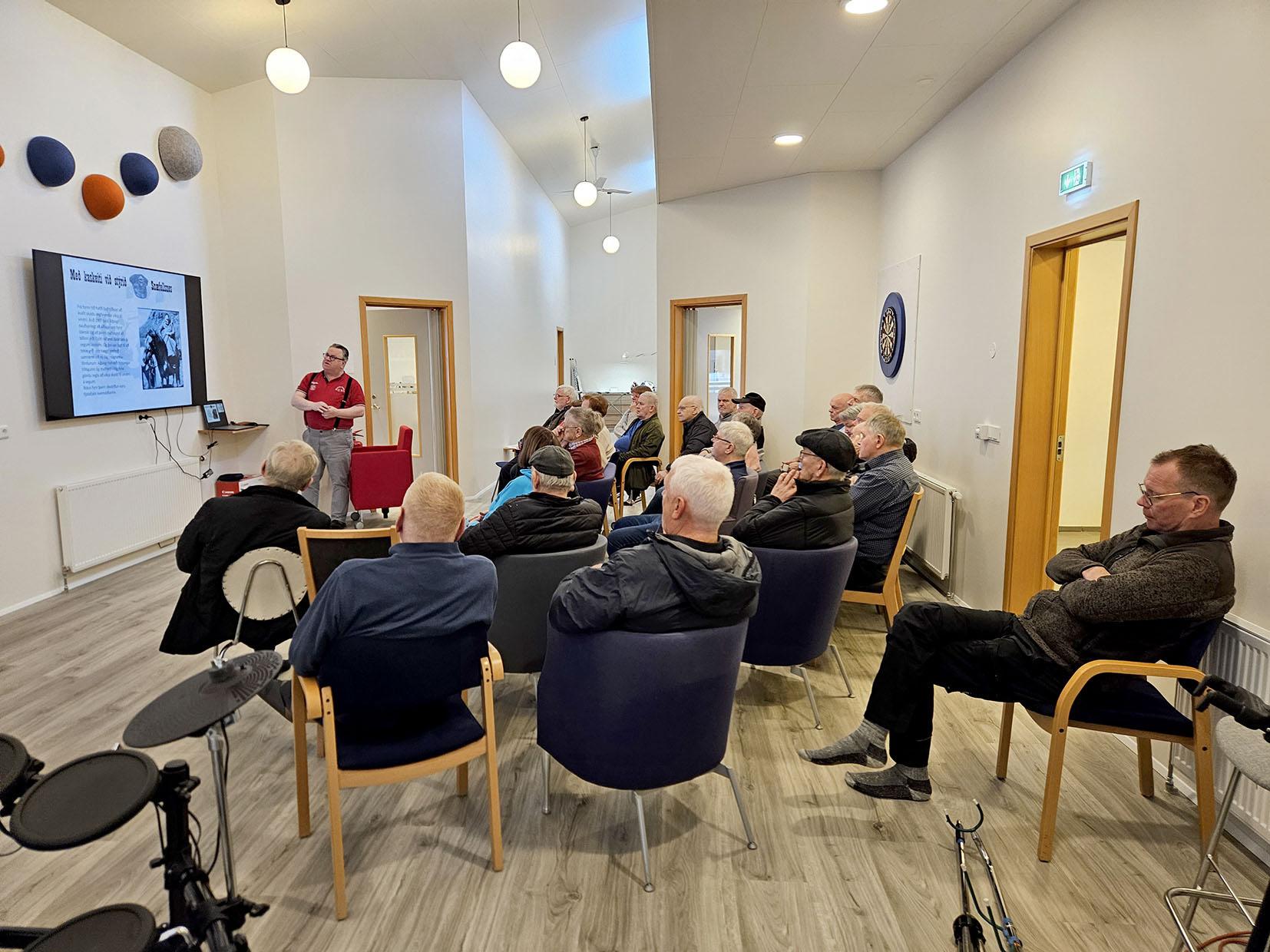 Ingi Hans erindi í Höllinni, félagsmiðstöð eldri borgara í Snæfellsbæ. Erindið bar heitið Með kaskeiti við stýrið og sagði hann þar sögu fyrstu bifreiða í Neshreppi