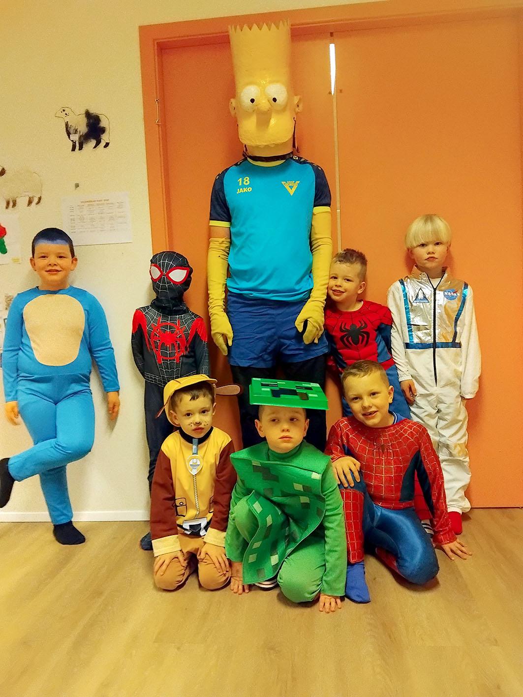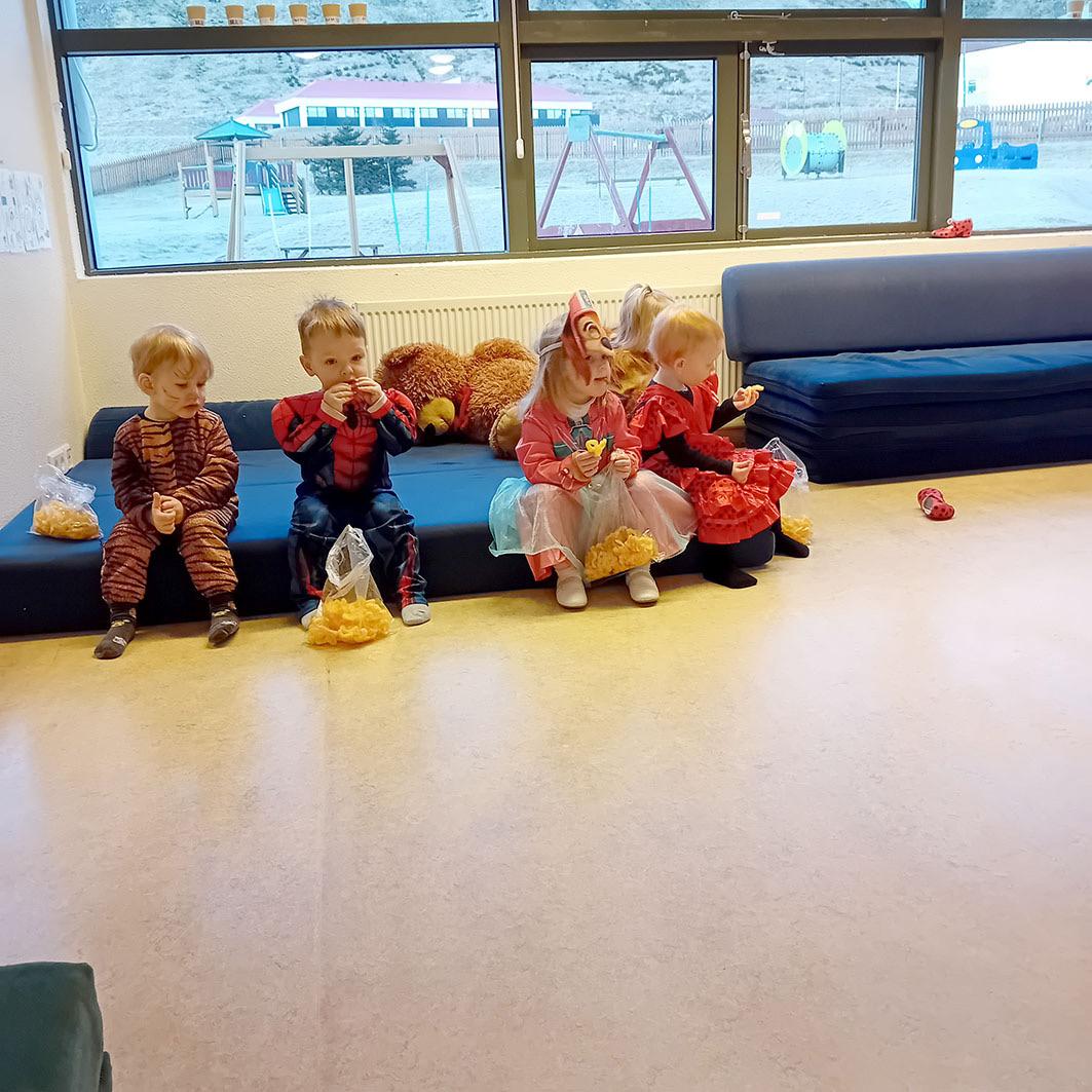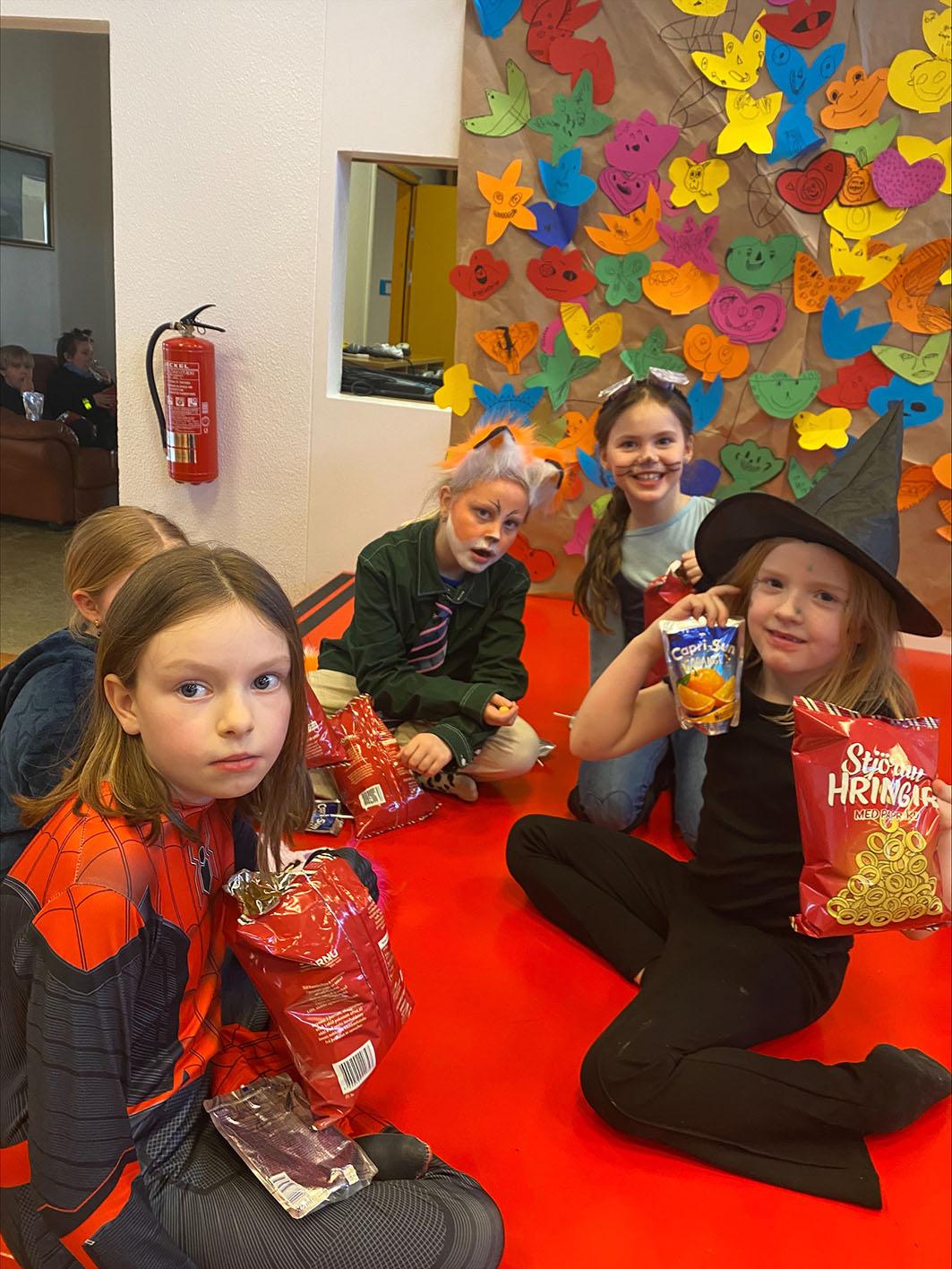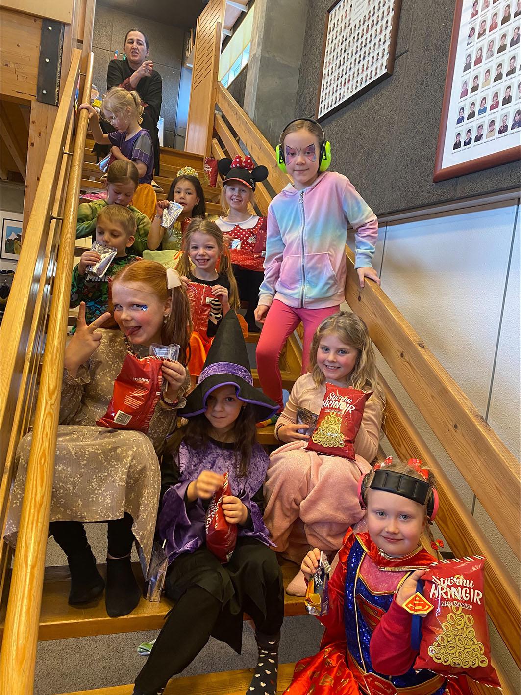 búninga gengur þau úr húsi í hús og óskuðu eftir að fá eitt hvað gott í gogginn frá heimil iseigendum sem tóku vel á móti þeim. Fullir pokar af nammi og