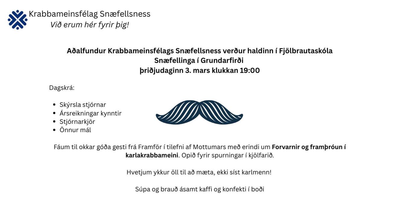 verður haldinn sunnudaginn 1. mars kl. 20