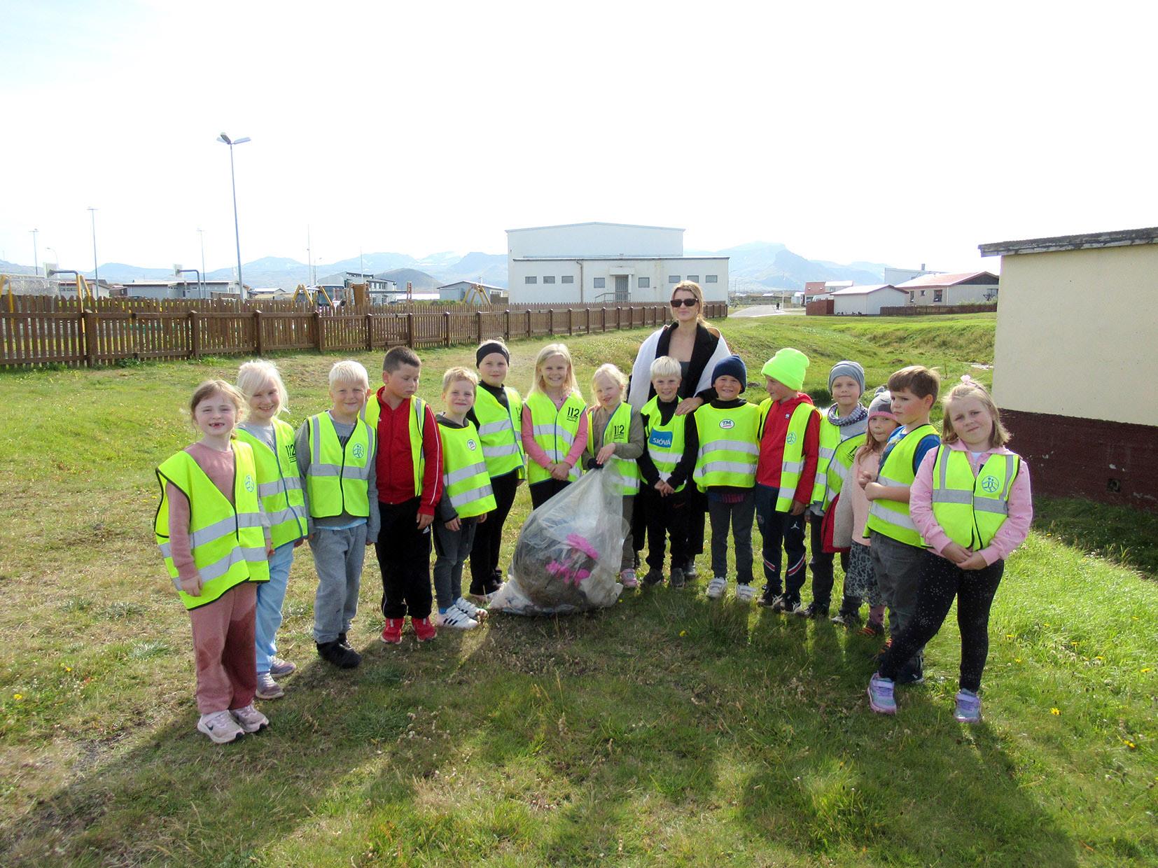 r hér aðeins stiklað á því helsta en einnig hefur verið unnið að fjölmörgum öðrum verkefnum bæði tengt Átthagafræðinni og öðrum námsgreinum. Eins og sjá má á myndunum hafa nem endur og kennarar notið útiver unnar um leið og þau hafa öðl ast nýja og hagnýta þekkingu á nærumhverfi sínu en á myndinni eru nemendur 2. bekkjar ásamt stuðningsfulltrúa með ruslið sem þau týndu úr Höskuldar ánni.