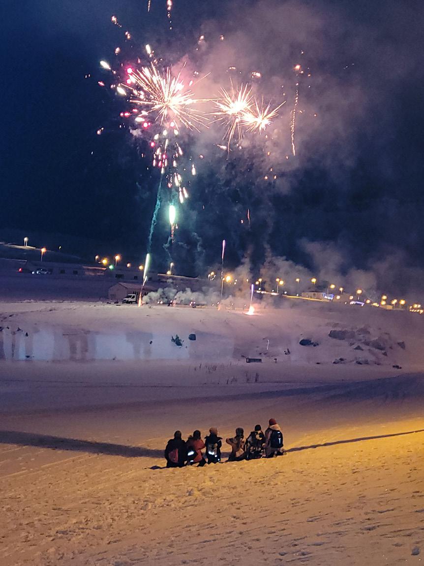dóttir sungu álfa- og áramótalög fyrir gesti á meðan jólasveinar spjölluðu við börnin áður en þeir héldu aftur upp til fjalla. Frost og logn var í Grundarfirði á þrettánd anum og því tilvalið veður til þess að sprengja síðustu flugeldana og klára stjörnuljósin.