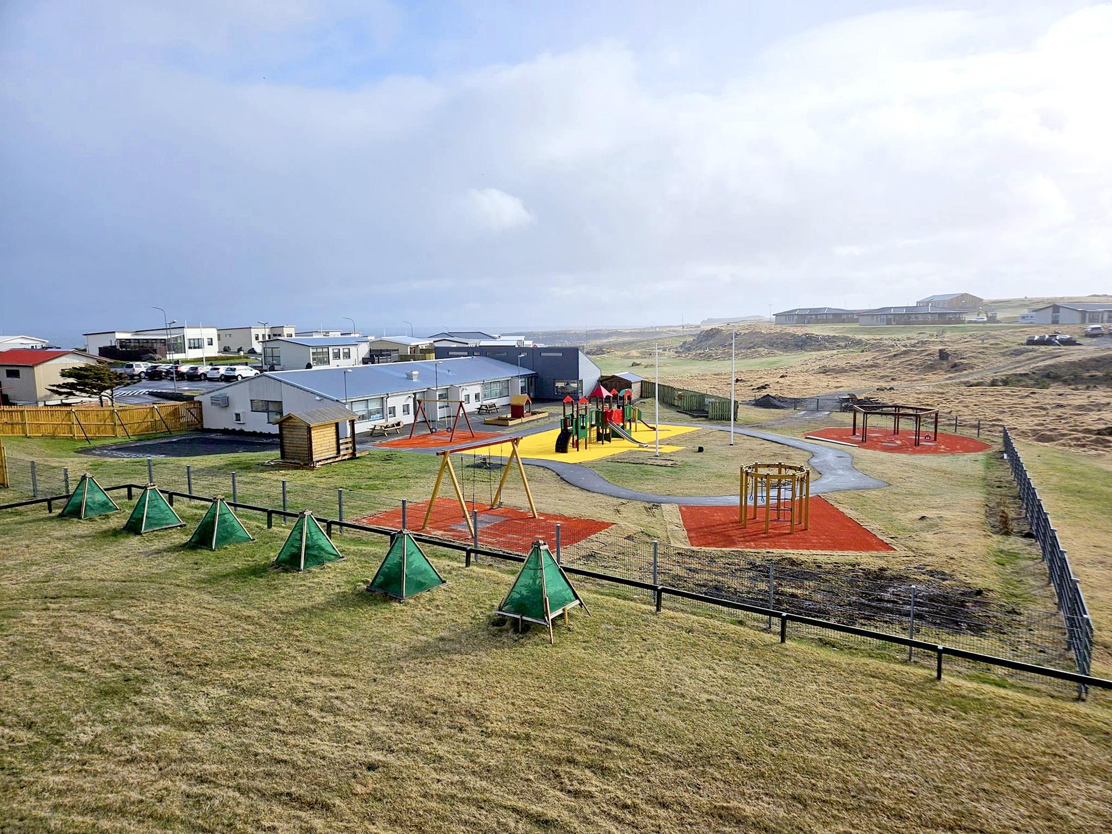 þeim nú lokið. í framkvæmdunum fólst að skipta út gúmmíhellum sem voru í kringum leiktækin fyrir gervigras og undirlag. Fallsvæðin í kringum leiktækin voru einnig stækkuð í leiðinni. Undanfarin ár hafa foreldrar kvartað undan svörtum lit sem gömlu motturnar smituðu í föt