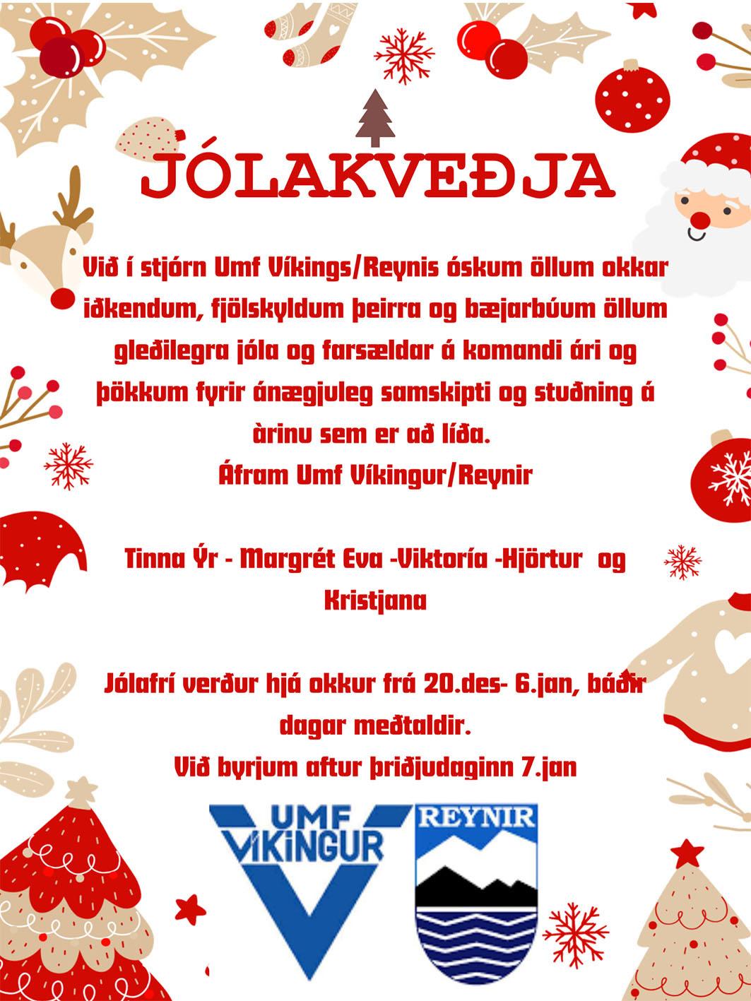 Við óskum ykkur gleðilegra jóla og að þið getið hvílt ykkur á þessum tíma, með fjölskyldu og vinum. Megi þetta verða ánægjulegur tími. Og við óskum ykkur risastórra gjafa frá jólasveininum.