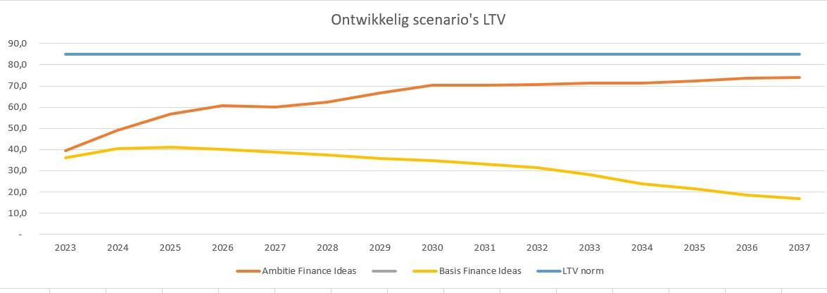 De Loan to value meet in hoeverre de kasstroom genererende capaciteit van de vastgoedportefeuille op lange termijn, gemeten aan de hand van de ‘beleidswaarde’ of ‘marktwaarde’ van de portefeuille vastgoed in exploitatie, in een gezonde verhouding staat tot de schuldpositie.