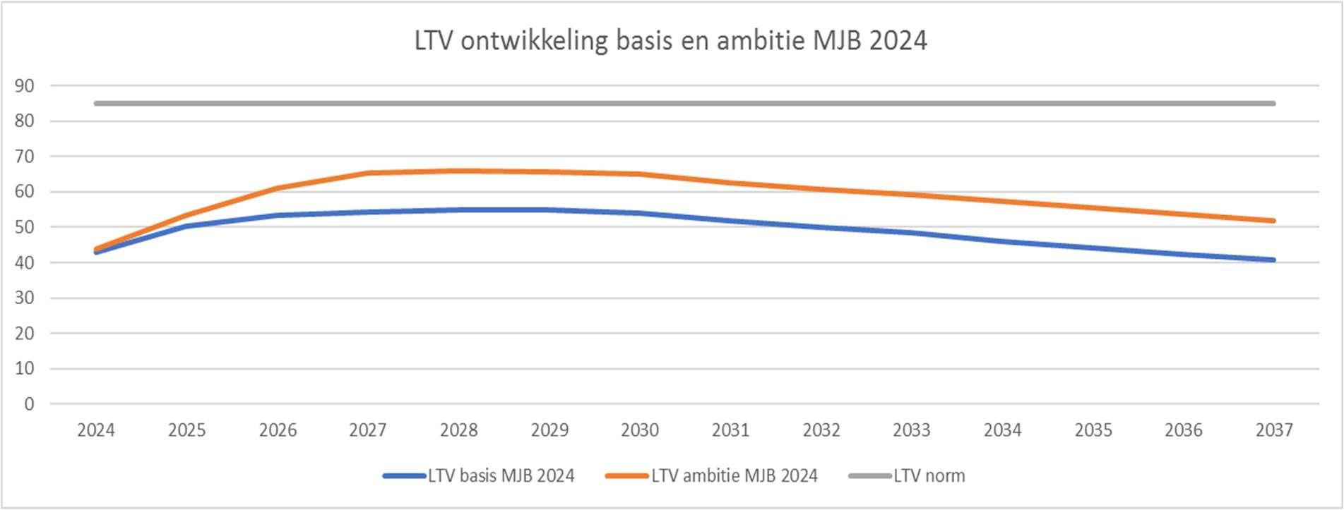 De dekkingsratio geeft de verhouding van de schuldpositie en de waarde van het onderpand weer. De waarde van het onderpand wordt bepaald op basis van de ‘marktwaarde in verhuurde staat’ van de portefeuille vastgoed in exploitatie.