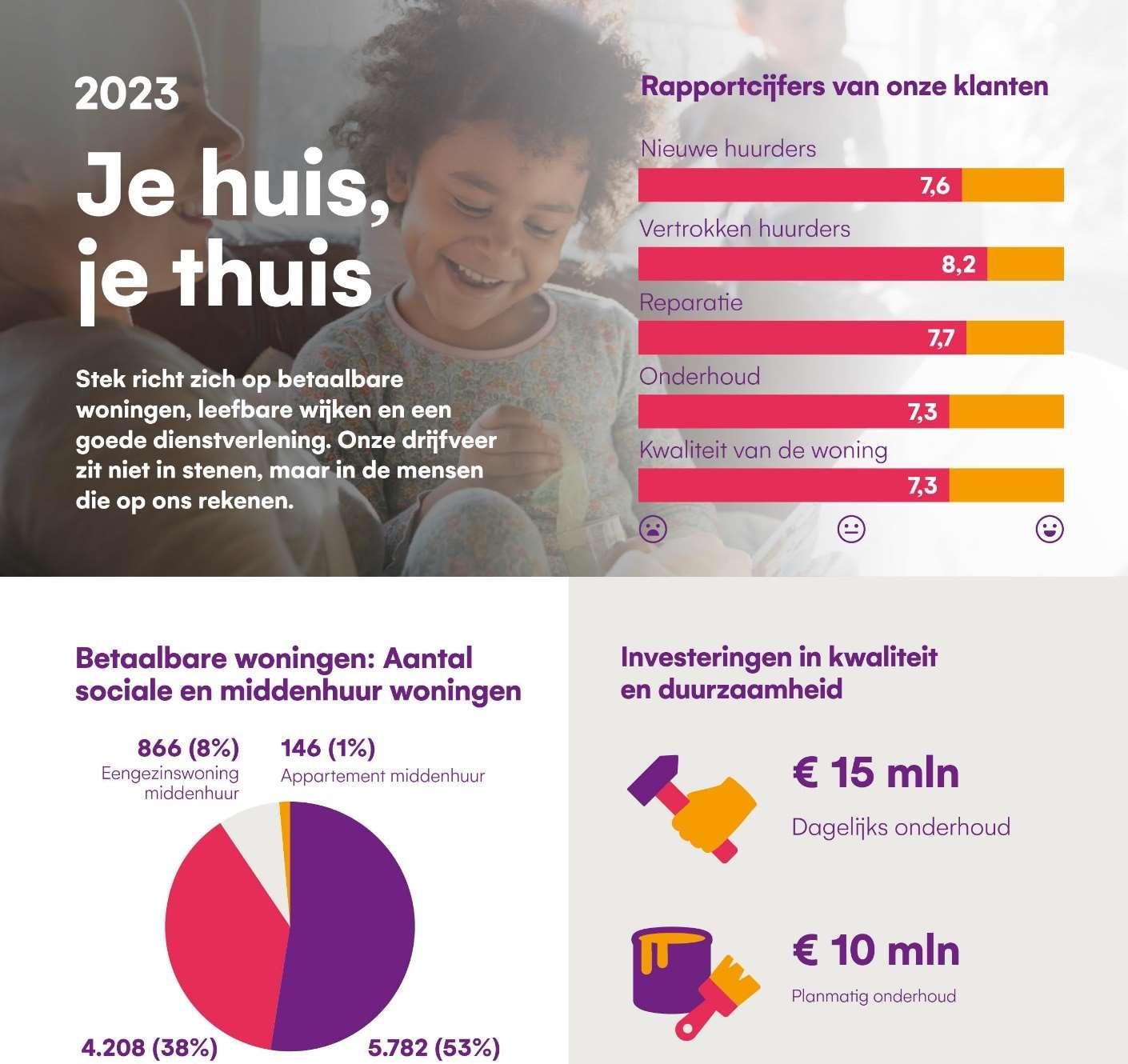 Maar tevreden huurders krijgen en houden zijn zeker niet vanzelfsprekend. Hiervoor is veel inzet nodig, elke dag weer. De tevredenheid meten we via enquêtes. Huurders kunnen een rapportcijfer geven. In ons ondernemingsplan staat dat we gemiddeld een 7,8 willen halen. Ons uitgangspunt is echter, hoe hoger hoe beter.
