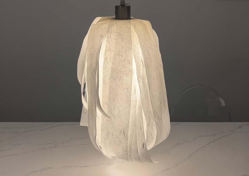 The pendant light, named "Wind Bloom", is the centrepiece of a project that celebrates the beauty and light of nature. This design is crafted using Hanji material and aims to capture the graceful movement of flower petals swaying in the wind.