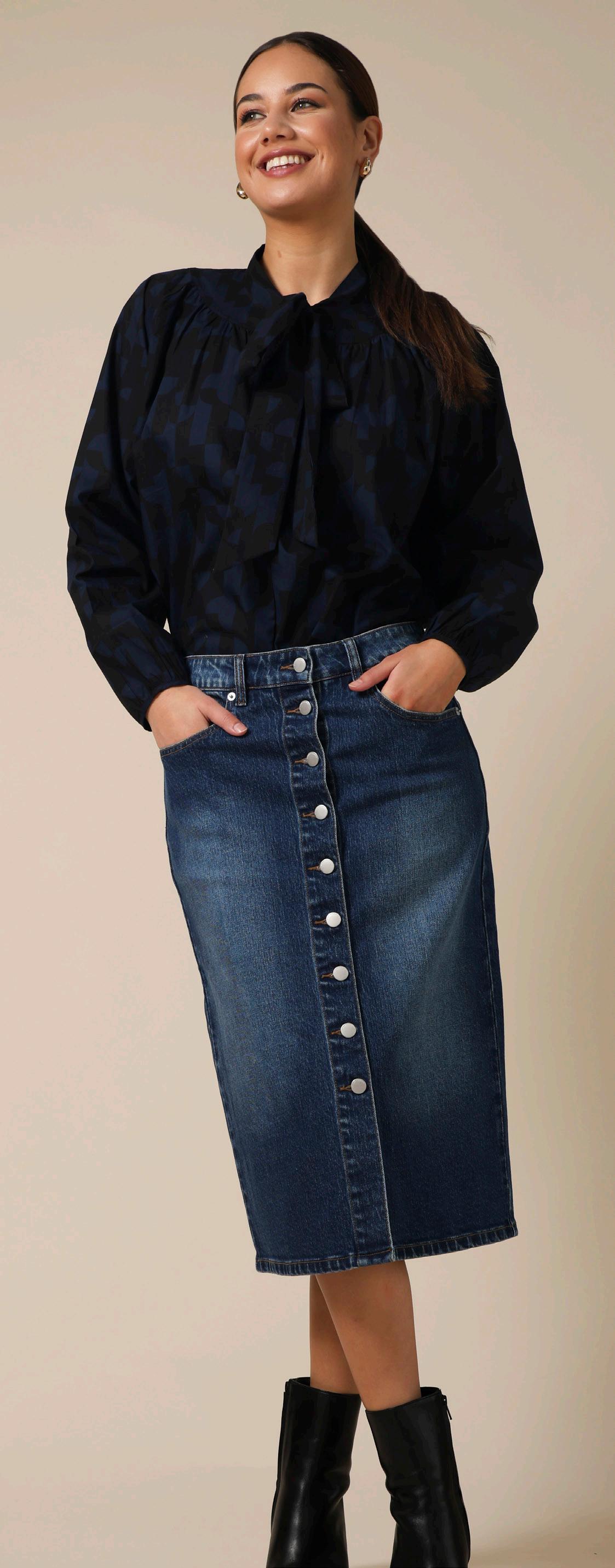 - denim | 50% viscose, 25% polyester, 25% nylon | sizes: XS - XL
