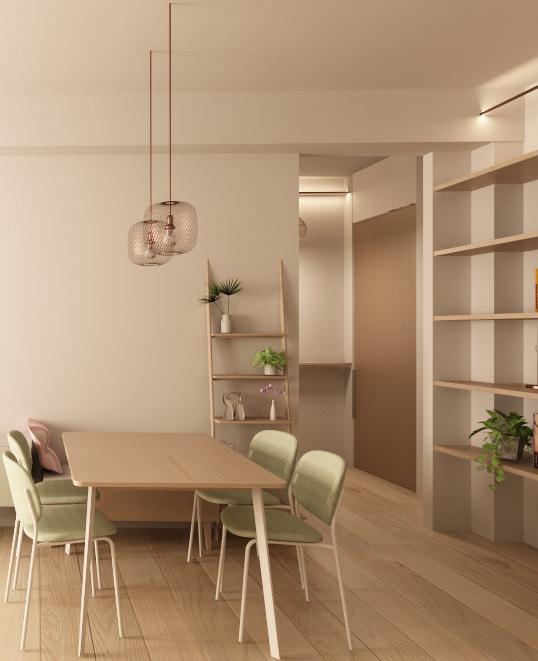 L’appartamento si trova al piano terra con unico affaccio verso un cortile interno, dunque la distribuzione degli spazi ha avuto come matrice principale il massimo sfruttamento dell’illuminazione naturale nella zona giorno.