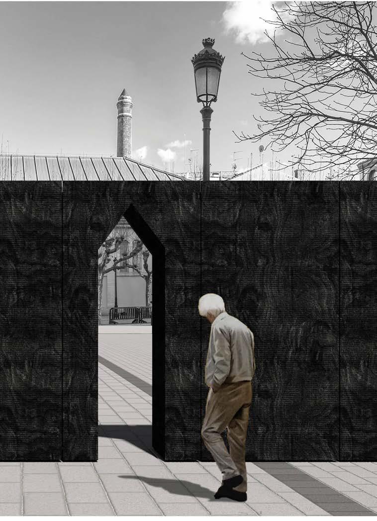 Il progetto nasce dalla volontà di provocazione, volta a far riflettere sull’importanza dello spazio pubblico, in questo caso annullato dall’interposizione di un muro che divide la piazza. Un elemento disturbante e di denuncia politica e culturale sulla divisione tra popoli e persone.