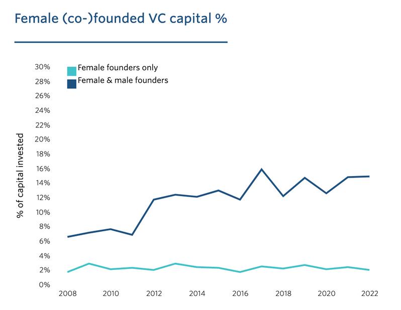Venture capital funding overall has surged in recent years, but the numbers haven't leapt forward for female founders at the same pace.