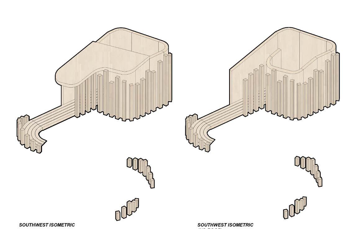 Situated in the northeastern curve of Nebraska’s border, Niobrara State Park offers scenic views and connects with neighboring states, serving as a historical and cultural crossroads that attracts visitors from across the nation. This project began with conceptual pavilion designs and evolved into a practical amenity-focused approach aimed at enhancing the park’s facilities. By integrating natural elements with CLT (cross-laminated timber) design, the project creates an immersive outdoor restroom experience. While many may view using restrooms in the wilderness as unappealing, this design redefines the concept, celebrating and elevating the experience of utilizing an enclosed restroom in a natural setting.
