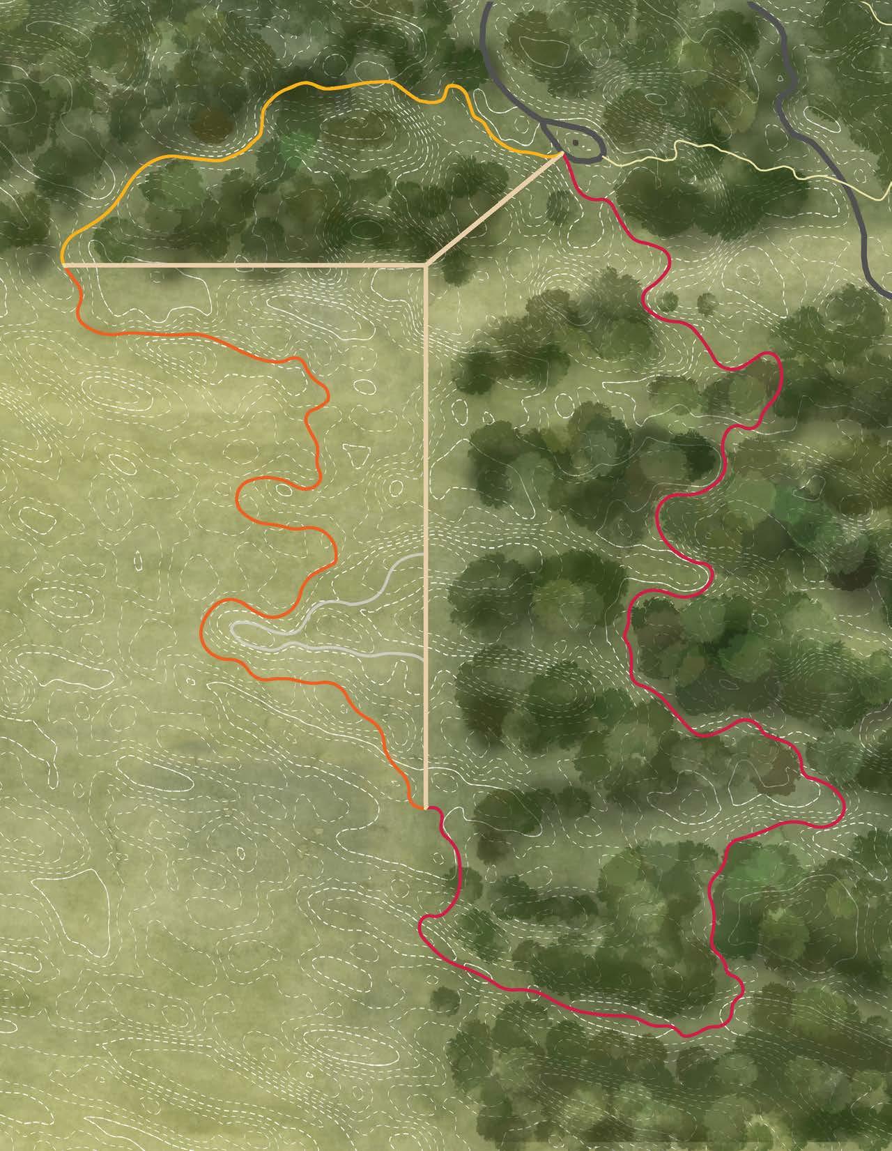 The Treeline Trail highlights the striking contrast between the forest and the Sandhills, provides historical context related to the Sandhills, and offers visitors opportunities for education, interaction, and reflection. This project was part of a studio-wide collaboration, with teams working on individual trails to develop The Trail Guide for a Hybrid Landscape , which earned a 2022 ASLA Regional Student Award. The studio maintained regular communication with Bessey National Forest and conducted a site visit to deepen their understanding of the area’s ecosystems and land management practices.