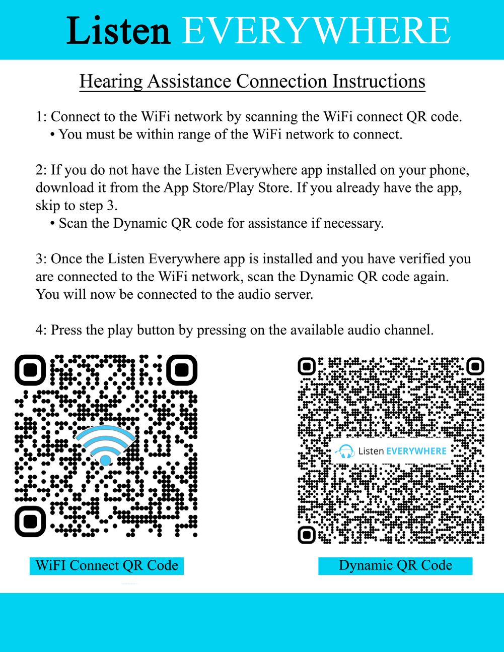 3. Once the Listen Everywhere app is installed and you have verified you are connected to the WiFi network, scan the Dynamic QR code again. You will now be connected to the audio server.