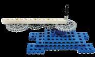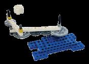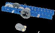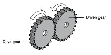 The Gear Ratio is the relationship between the number of teeth on two gears connected together. In the above picture, the larger gear has 40 teeth, while the second, smaller gear has 8 teeth. The gear ratio is therefore 40/8 (also written as 5:1). This means that for every one revolution of the larger gear, the smaller gear makes 5 revolutions. The first number in the ratio is usually the drive gear.