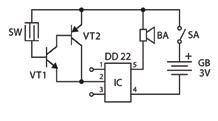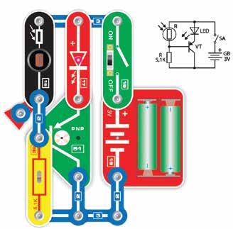 1) Assemble the circuit. To make the LED light up, you have to simultaneously close the switch 15 and the button. This is the logical element “AND”