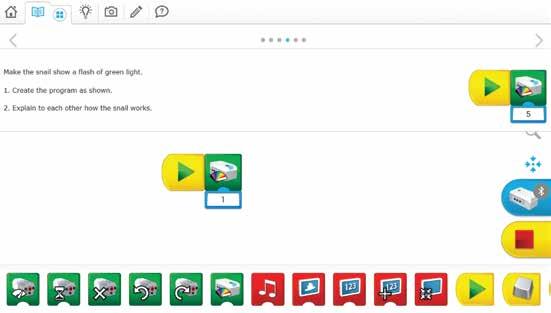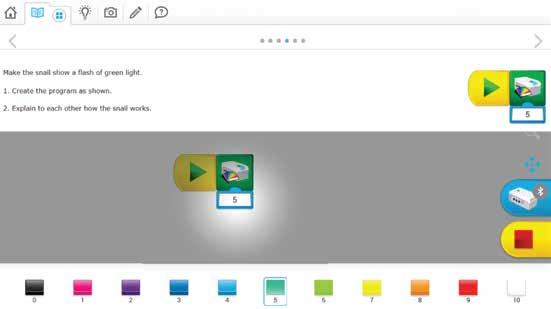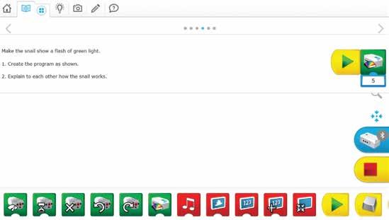 Evaluate constantly to reach your objective. Use the engineering design process: identify the problem, brainstorm, create, evaluate/test, improve, and communicate. Click this button to start the snail's glow and program it with different colors to observe its performance. Make it emit your favorite light continuously by experimenting.