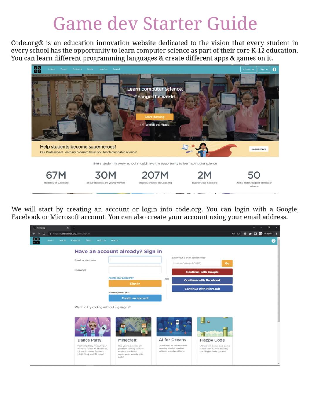 Access to computers and internet-enabled devices will be required for game development using code.org.