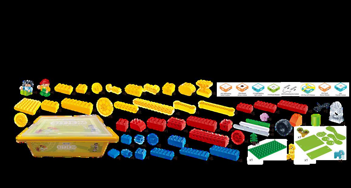 Welcometoanexcitingworldofexplorationandinnovation,designedforlearnersaged 6â7 years! This kit includes everything you need to bring ideas to life: axles, gears, pulleys, wind blades, flowers, and pre-coded building bricks. These components empower young learners to create imaginative and functional projects, turning their ideasintoreality