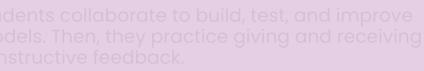 Studentscollaboratetobuild,test,andimprove models.Then,theypracticegivingandreceiving constructivefeedback.
