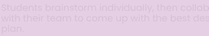 DesignandPlan Build-Test-Improve Studentsbrainstormindividually,thencollaborate withtheirteamtocomeupwiththebestdesign plan.