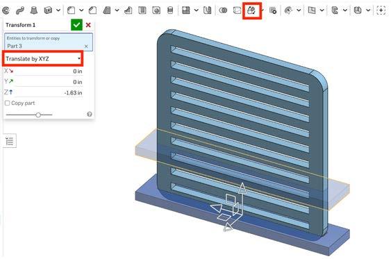 5. Movethepositionofthestandtotheendoftheobjecttosupportit.Thiscanbedoneby using“transform”toolthenselect“translatebyx,y,z”thenmovingtheobjectonthezaxis.