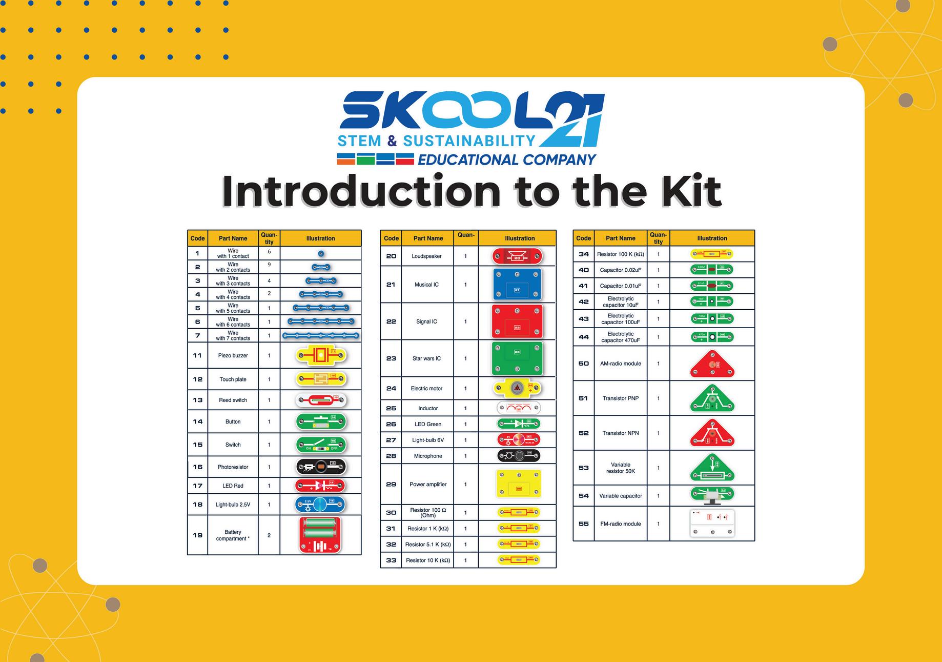 Withthesetools,learnerswillexplorehowelectricityflows,howswitchescontrolcircuits, and how simple components work together to create functional projects. Through hands-on activities, they will enhance key STEM skills such as problem-solving, critical thinking,andlogicalreasoningwhilegaininganearlyfoundationinelectronics