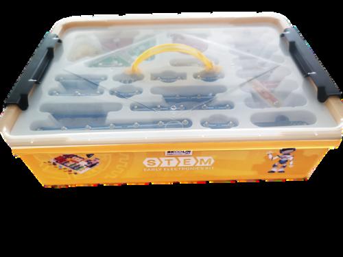 Welcome to an exciting world of exploration and innovation designed for learners aged 7–8years!TheEarlyElectronicsKitintroducesyounginnovatorstothefascinatingworld of circuits and electricity. This kit includes everything needed to build and experiment withelectronicprojects:snapcircuits,bulbs,batteries,resistors,sensors,andbuttons—all essentialcomponentsforunderstandingbasiccircuitry
